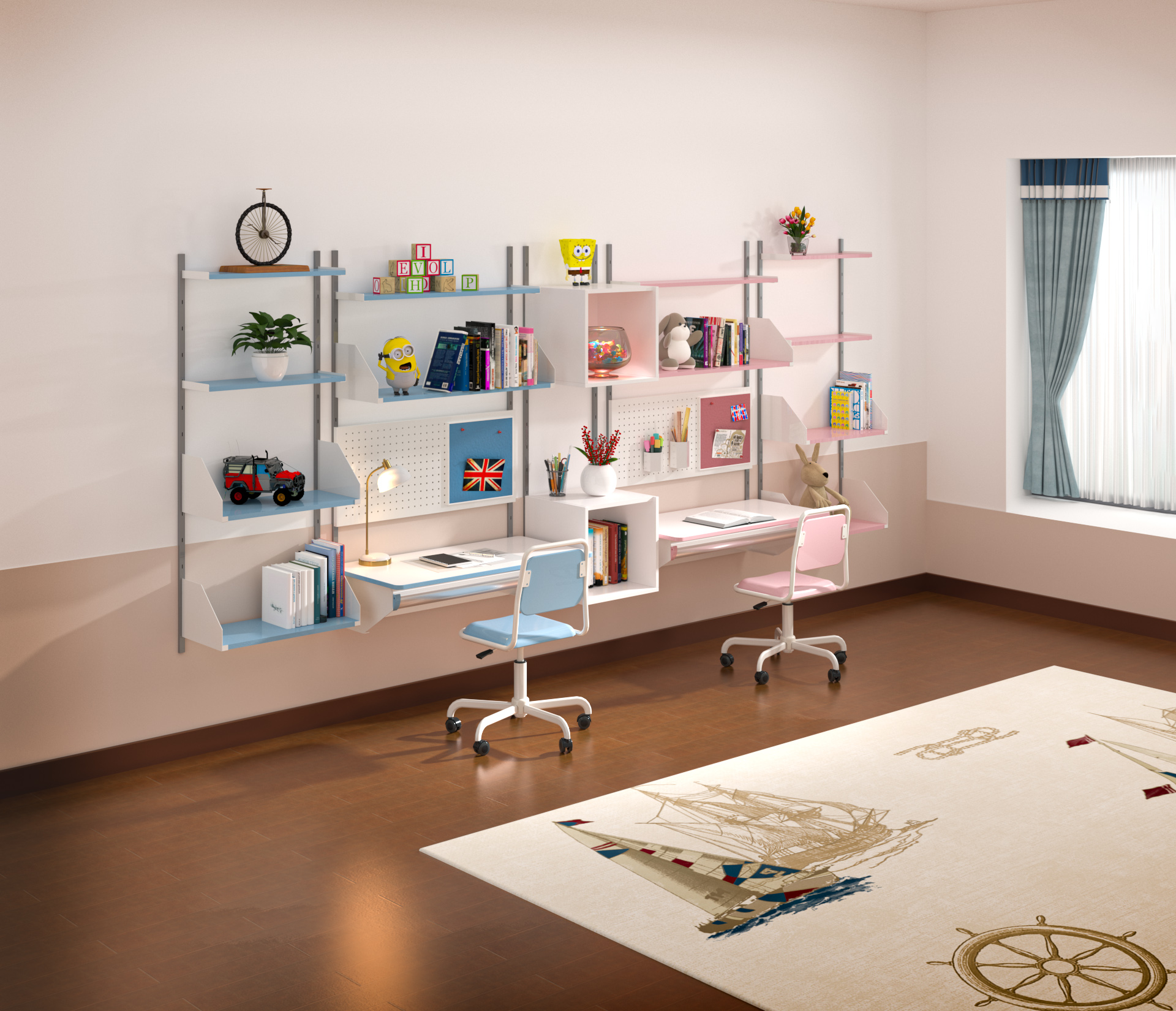 • Theo nghiên cứu và khảo sát nhiều gia đình có hai con trai gái cũng sàn tuổi nhau. Đội ngũ thiết kế của chúng tôi đã cho ra nghiên cứu bộ đôi bàn học song hành với hai tone màu xanh và hồng tiện ích.