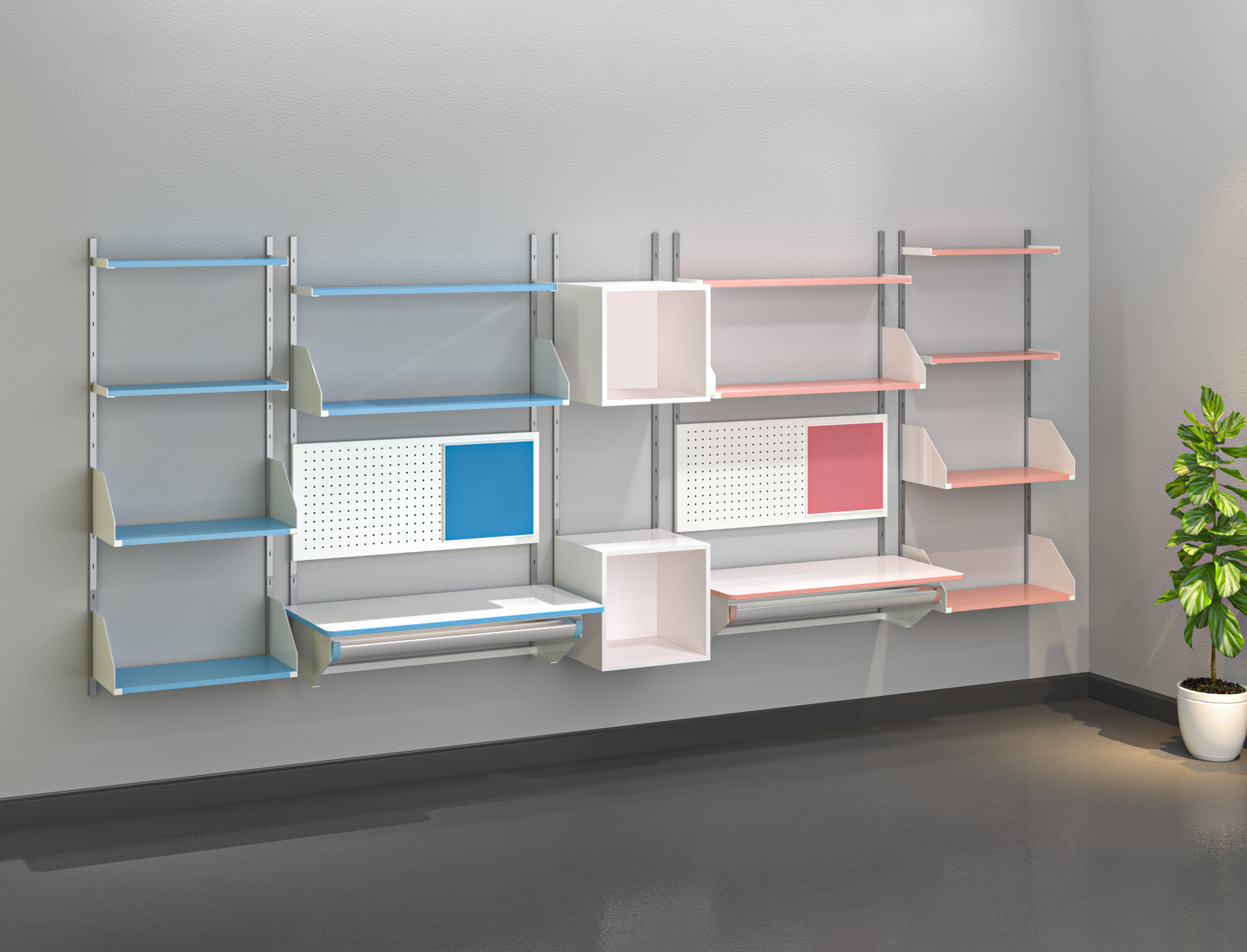 • Các cụm kệ, tủ, bảng ghim có thể thay đổi vị trí hoặc mở rộng theo nhu cầu.