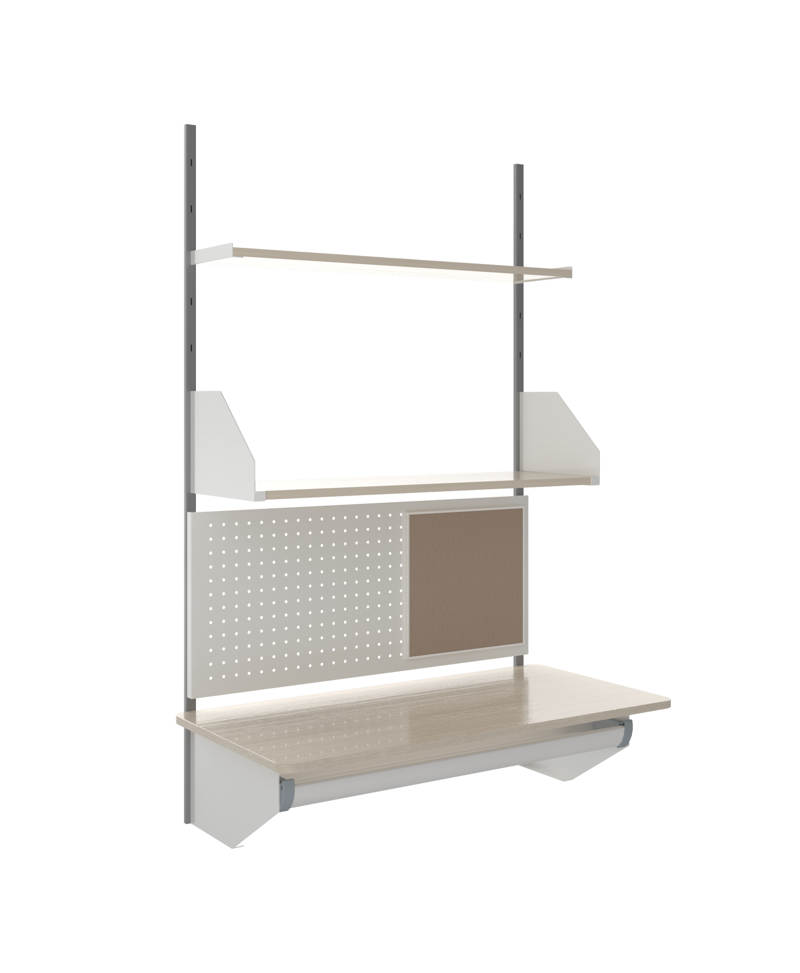 • Tích hợp nhiều công năng – bảng ghim + kệ + mặt bàn:
