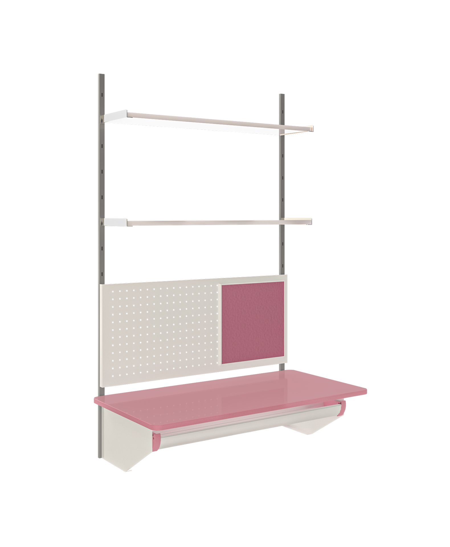 • Khu vực bàn có bảng ghim (350×350mm) và bảng cài (900×H400mm) để dán ảnh, ghi chú, treo dụng cụ.