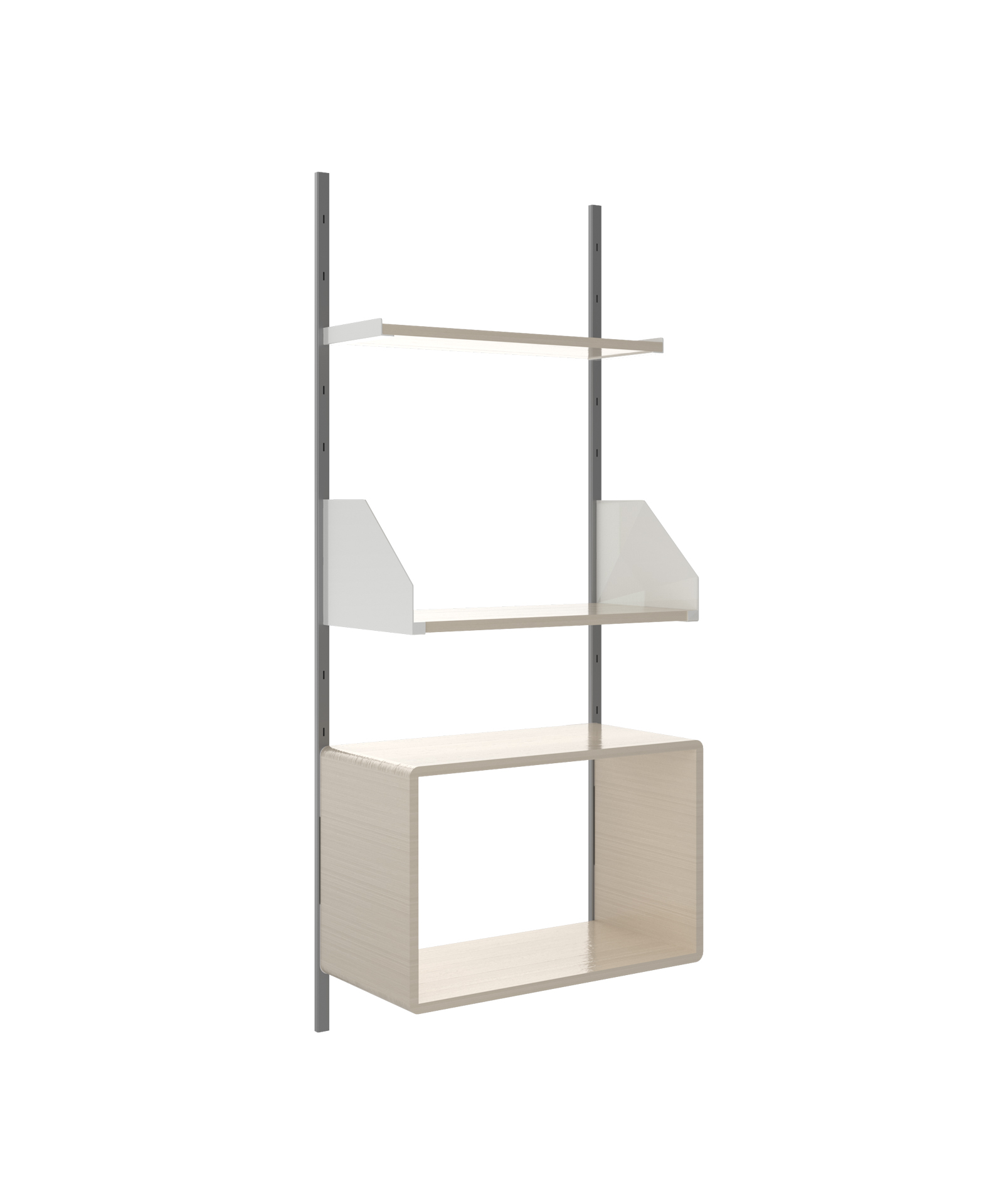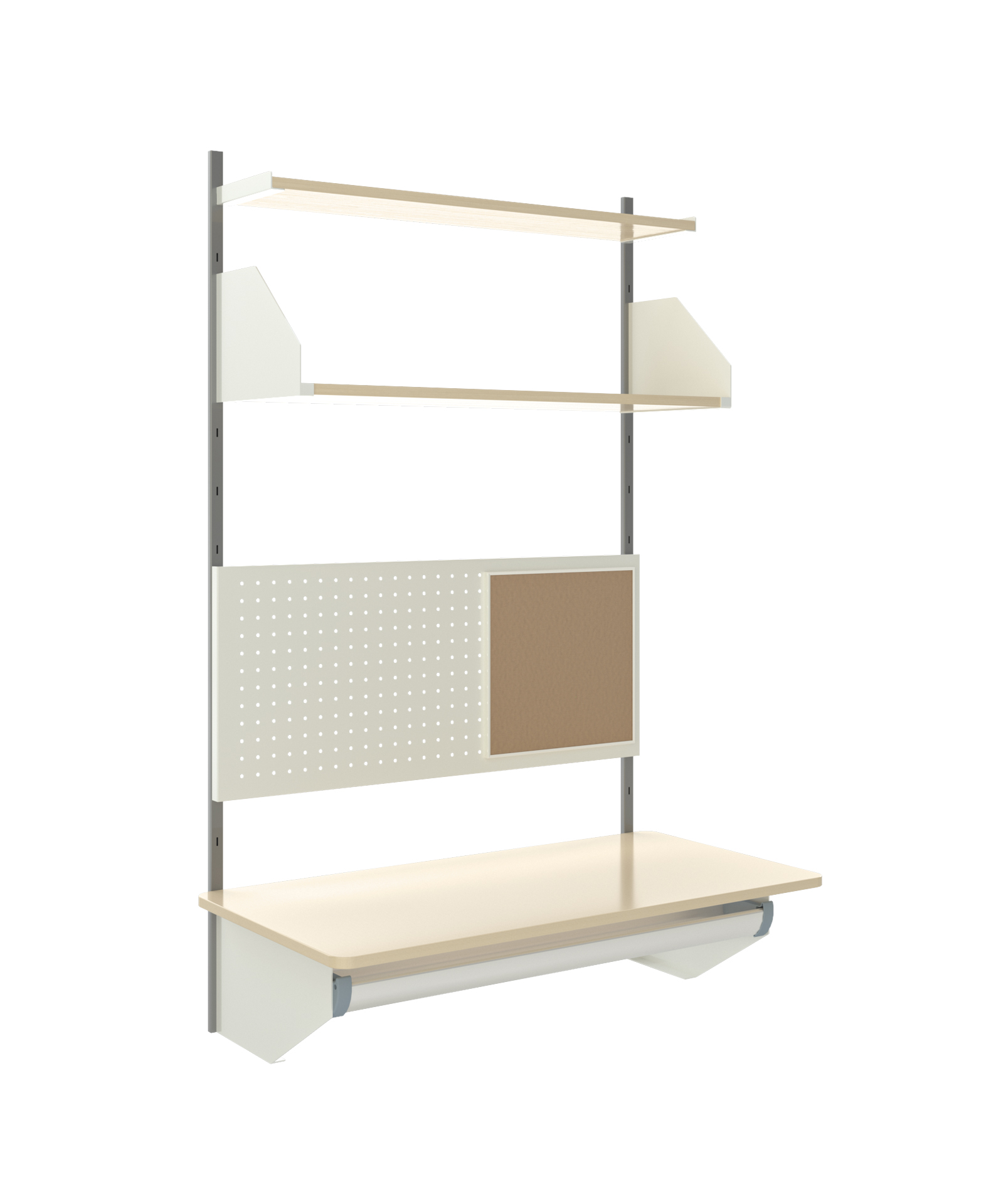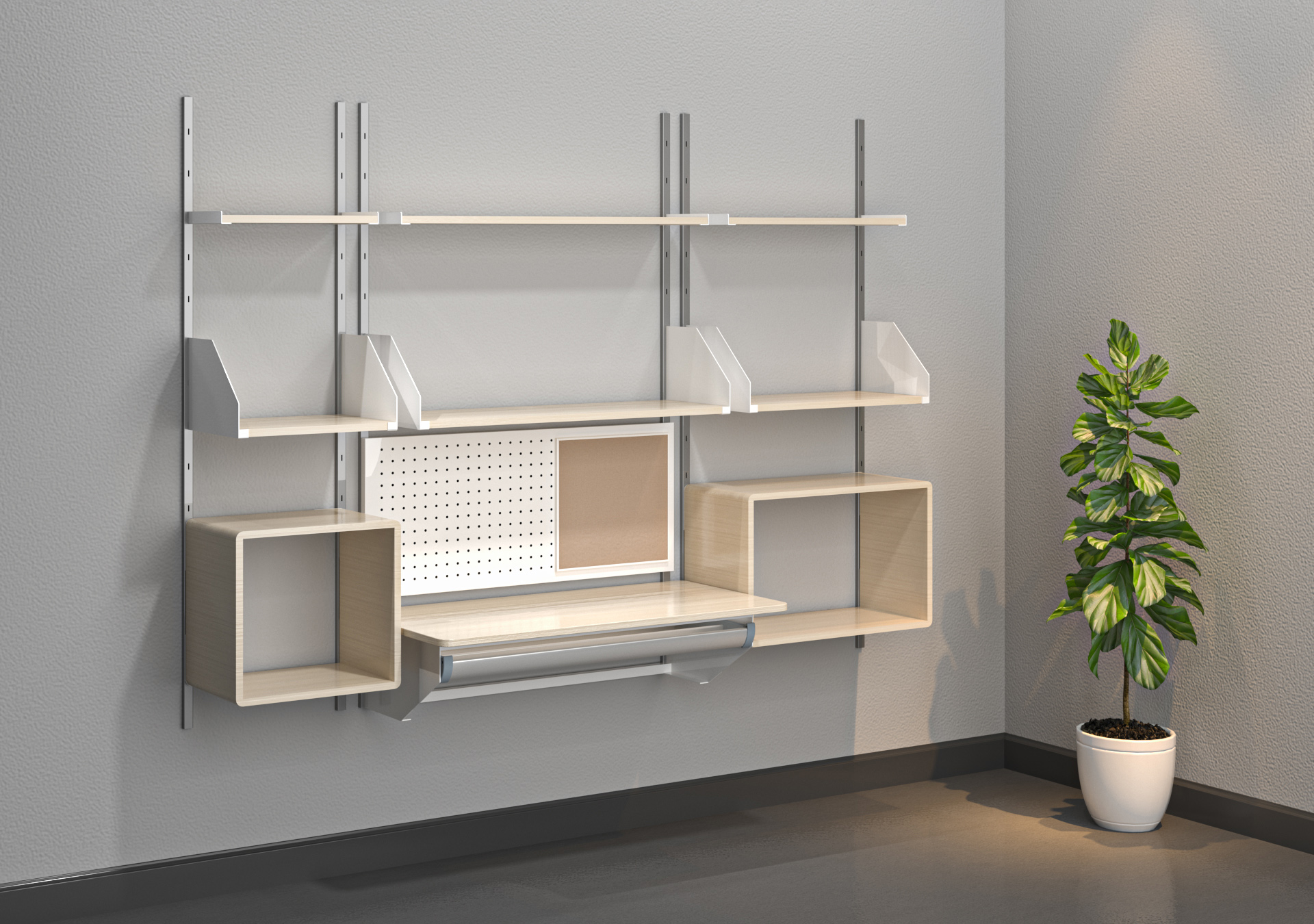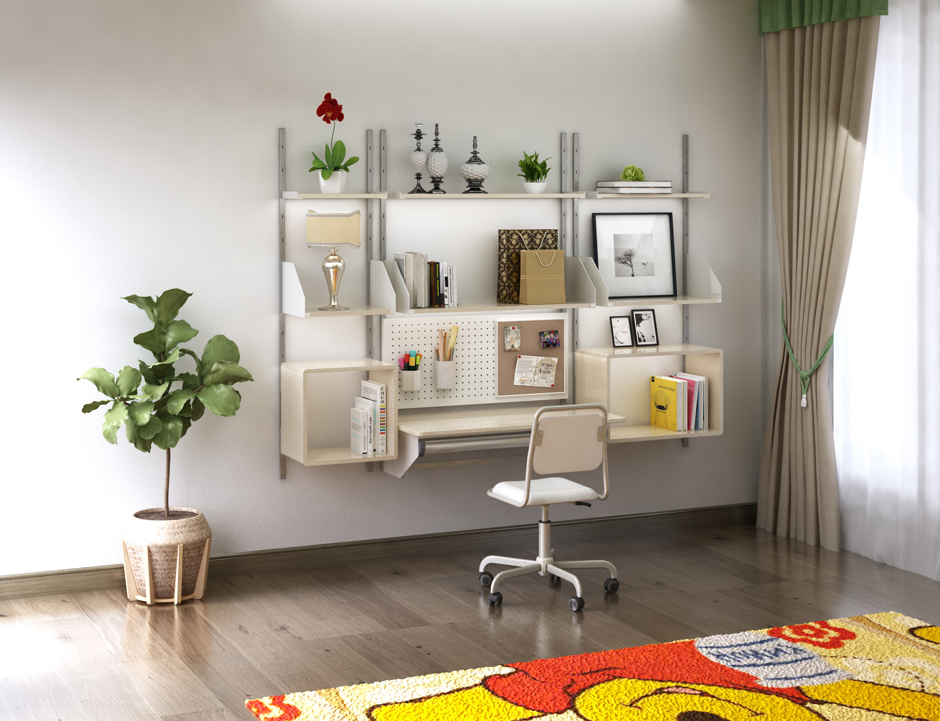 - Cụm 02: 01 giá W900*D200mm + 01 giá W400*H220*D300mm + 01 bảng cài W900*H400mm + 01 bảng ghim W350*H350mm + 01 mặt bàn W1000*H250*D500mm.